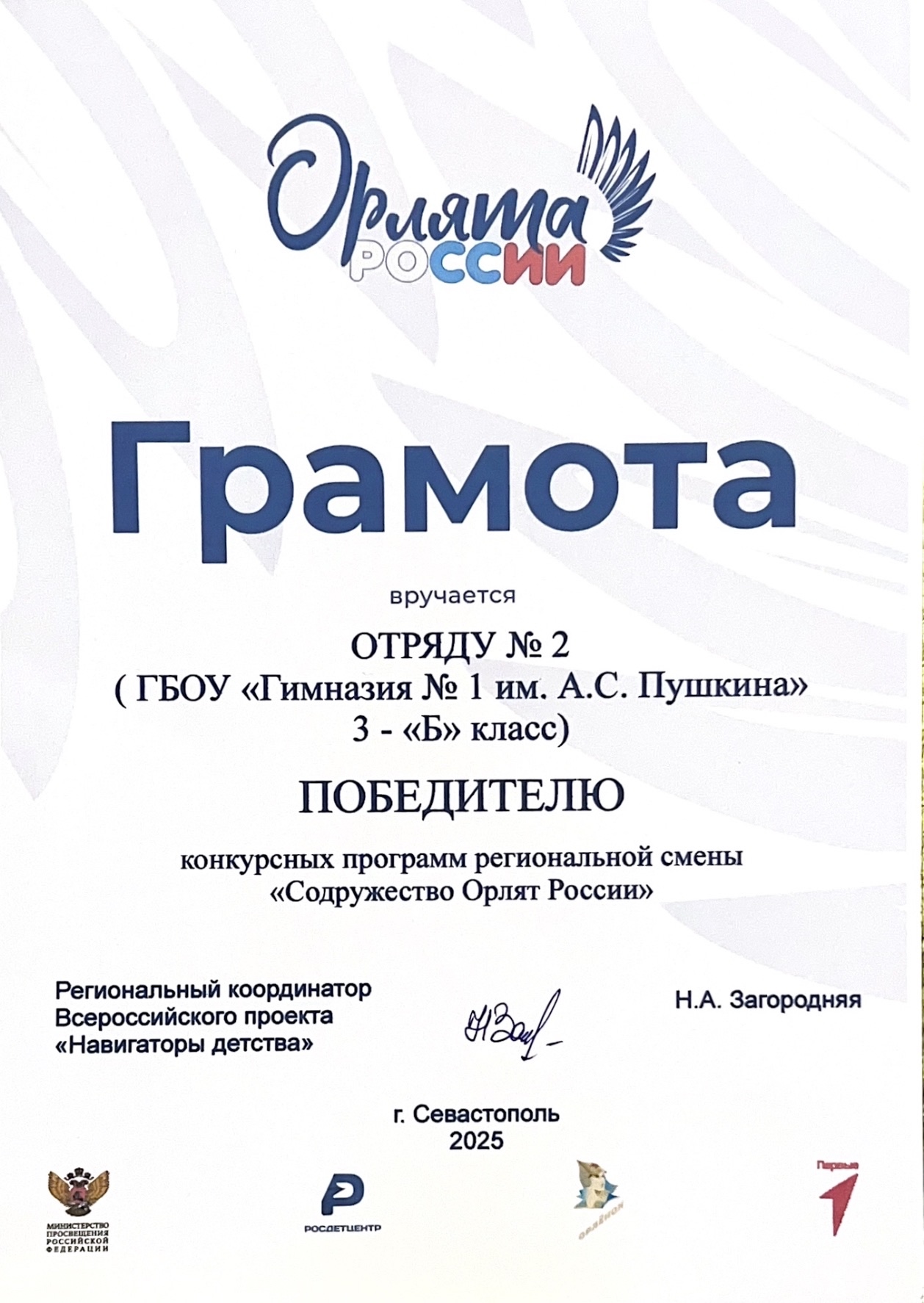 3-Б класс - победитель конкурсного отбора на региональную смену "Содружество Орлят России" - 2025: